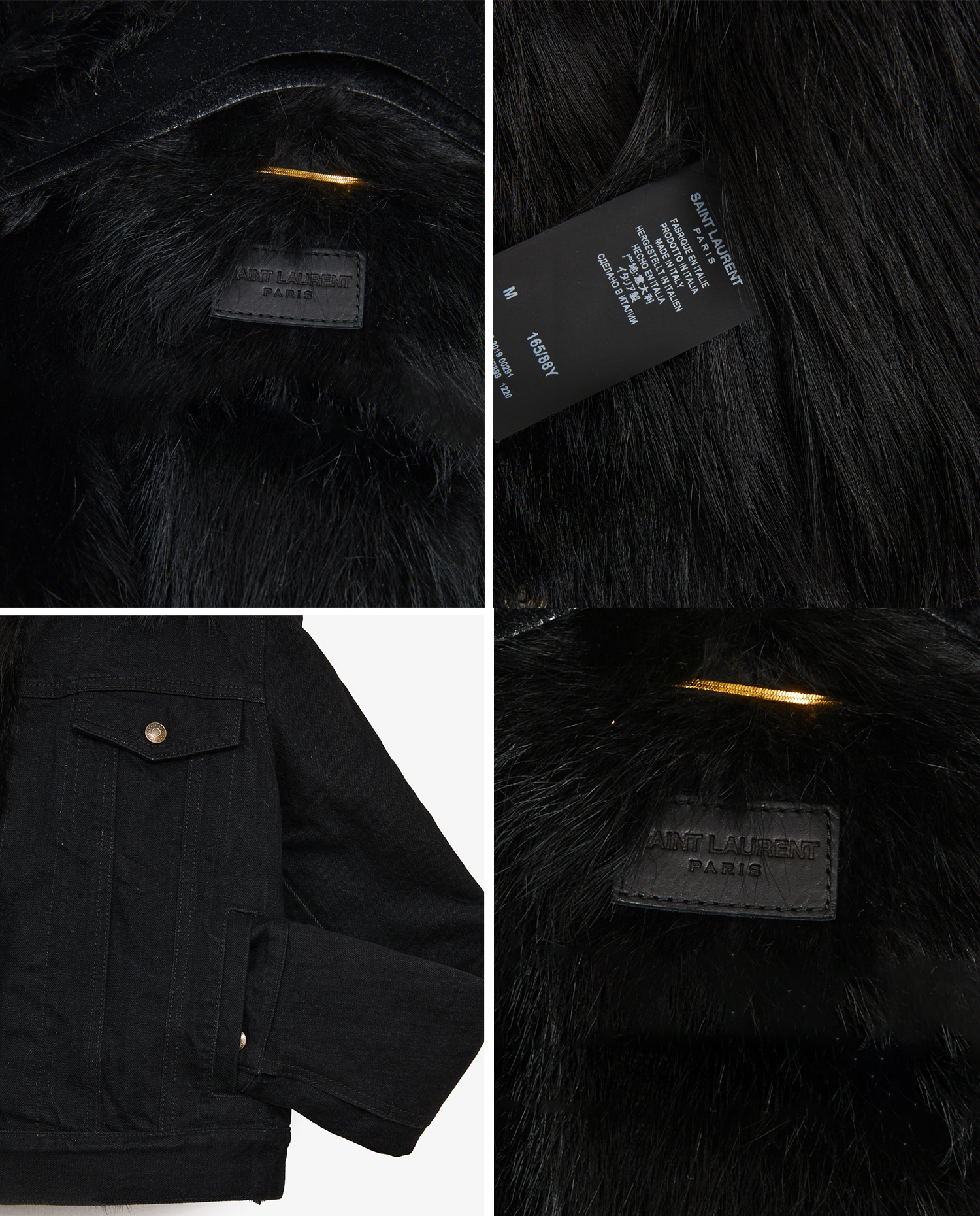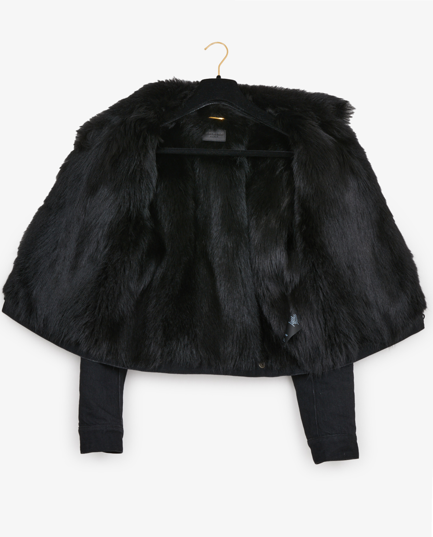 Veste Saint Laurent en denim et fourrure de renard noire. Taille M. Doublure manches en coton. En très bon état.