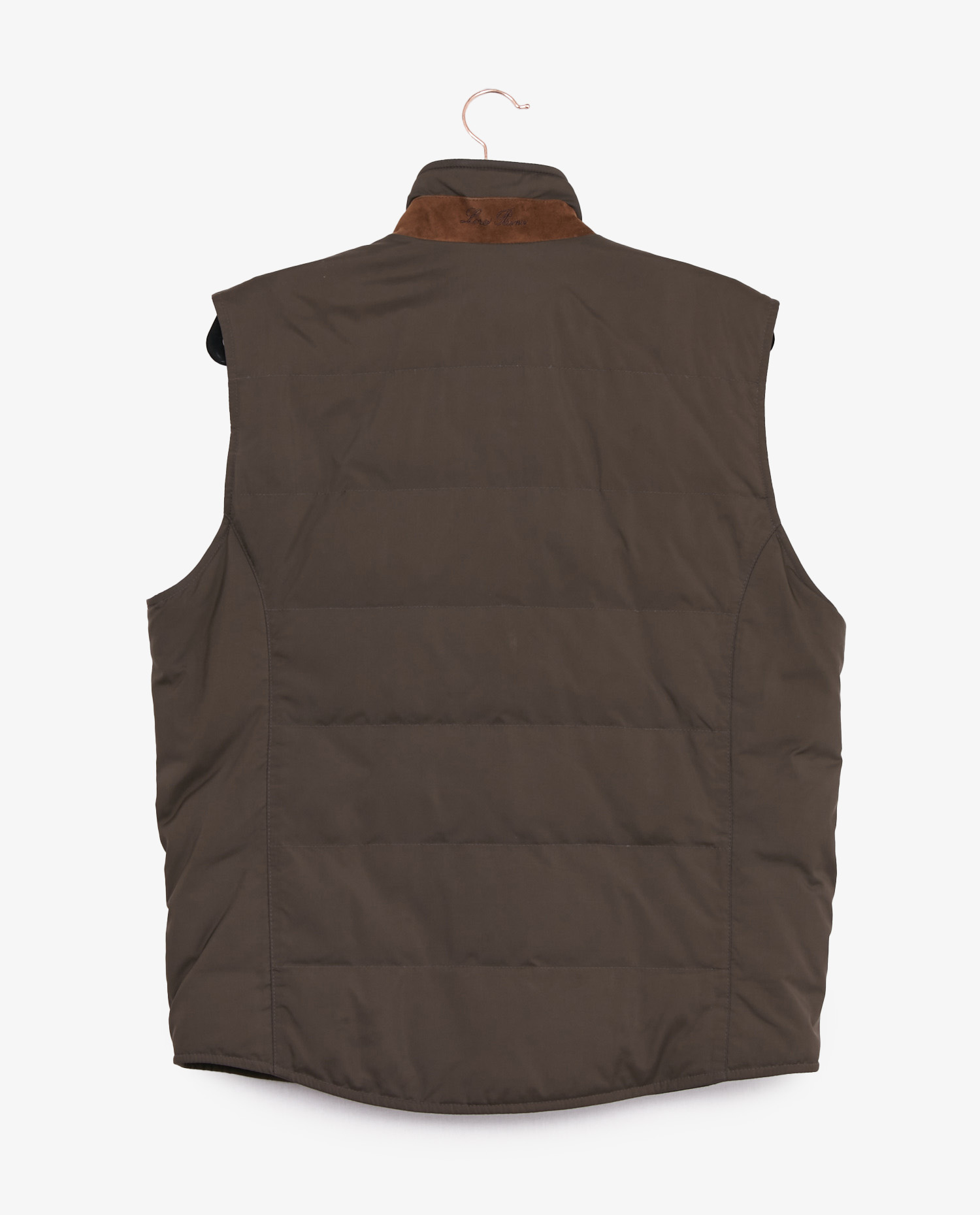 Depuis ses origines, Loro Piana développe des vêtements alliant luxe et fonctionnalité, souvent orientés vers un usage outdoor élégant. Spécialiste des matières haut de gamme, la maison italienne a investi le segment des vêtements techniques dès les années 1990 avec ses collections Storm System ou Travel Line. Ce gilet s’inscrit dans cet héritage, à la croisée du vestiaire de campagne chic et de l’élégance urbaine, en collaboration avec la maison Degand Sport à Bruxelles, référence du prêt-à-porter masculin haut de gamme.