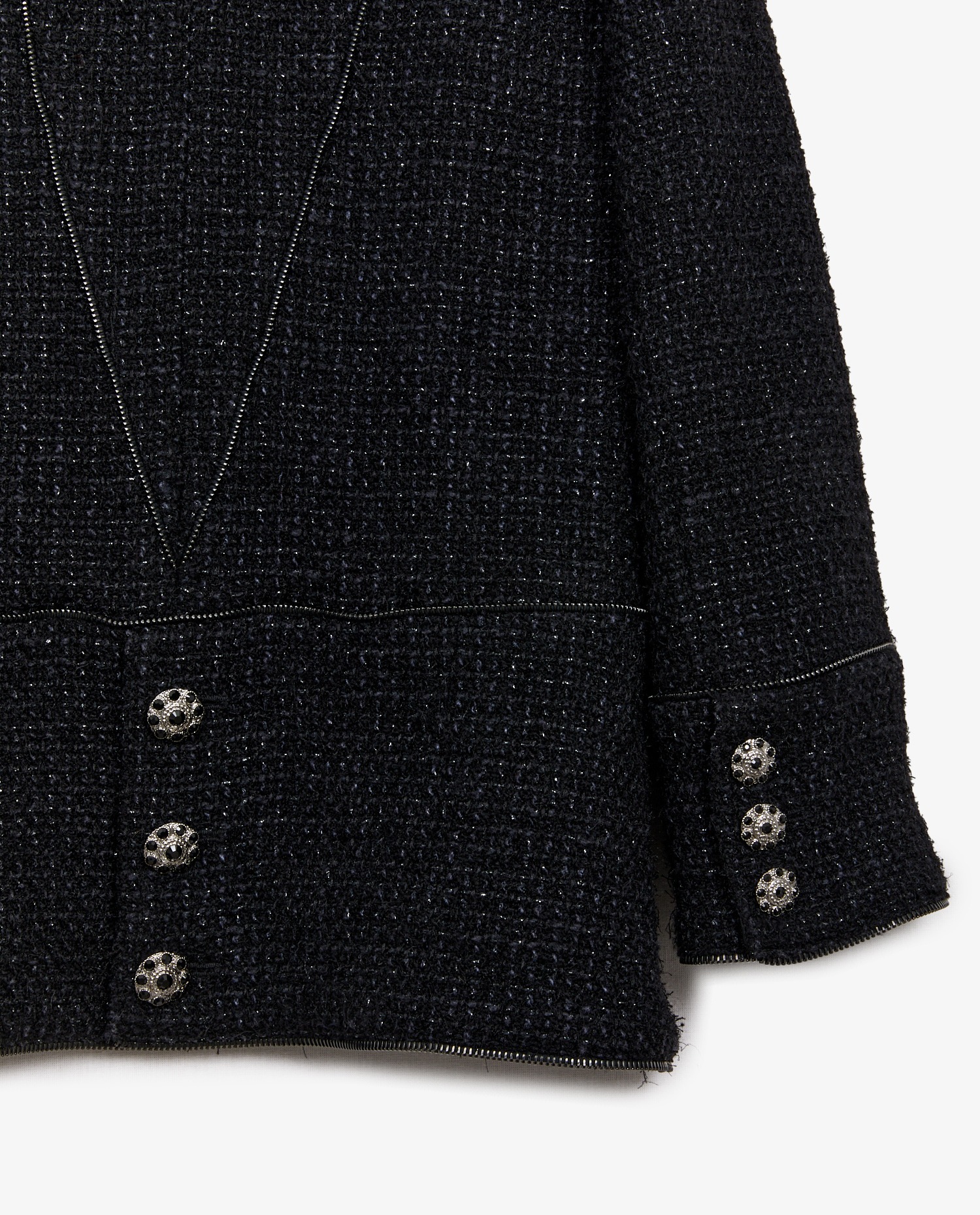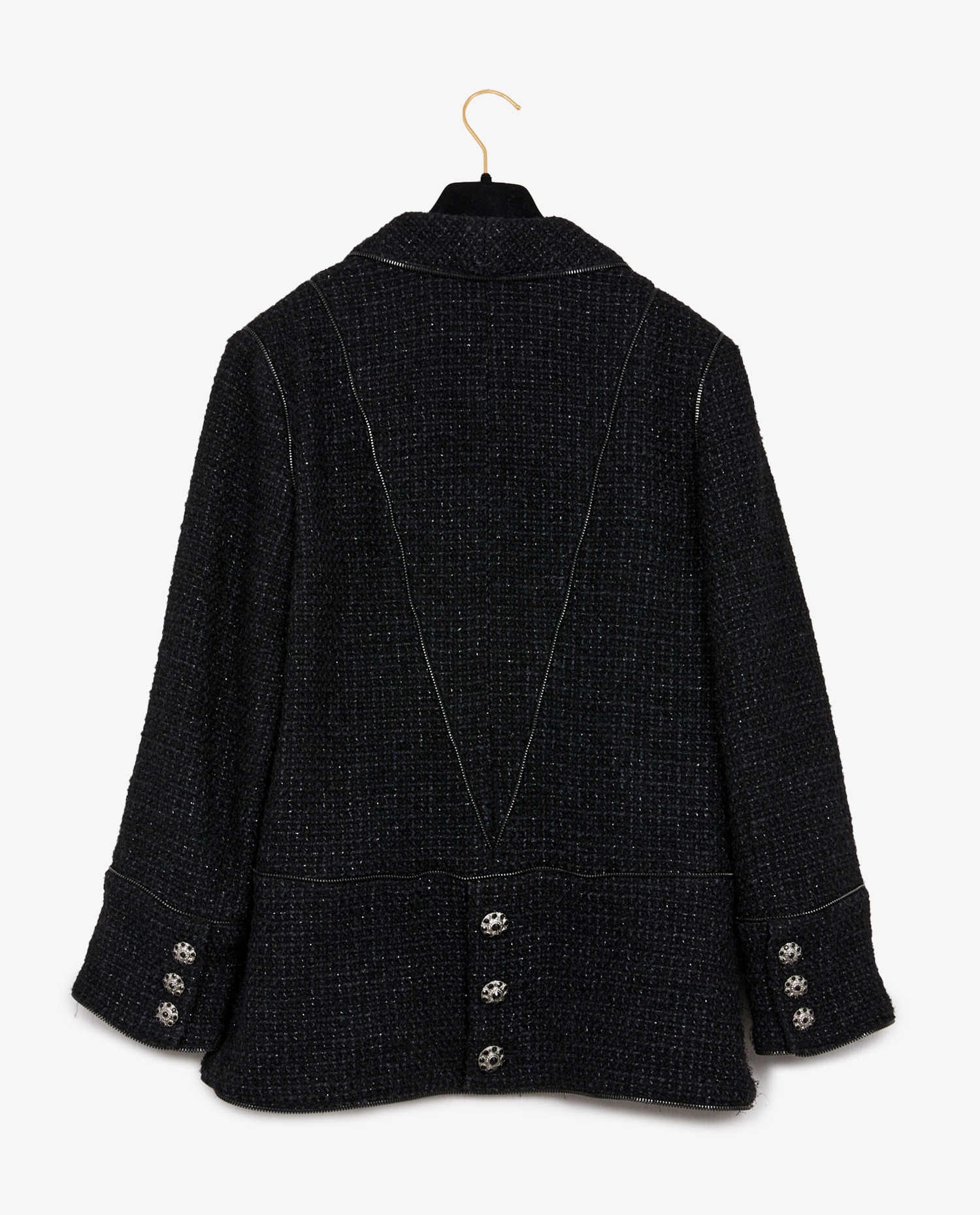 Veste Chanel en tweed et bouton en pâte de verre. En très bon état.