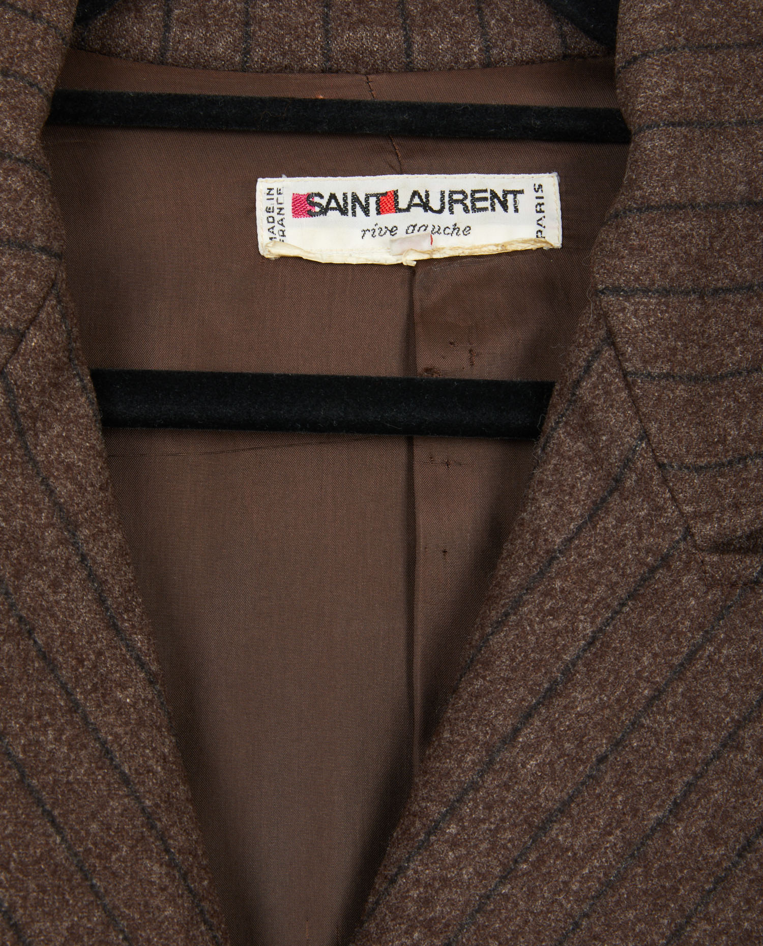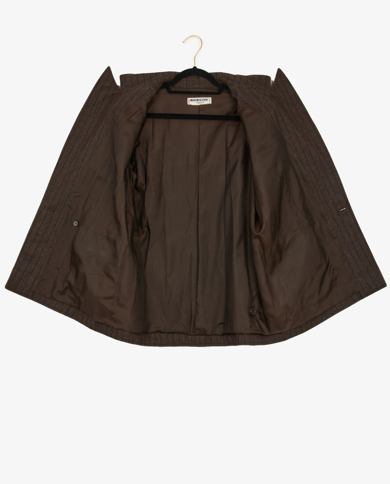 Veste croisée Yves Saint Laurent en laine marron. Taille 42. Coupe droite Deux poches plaquées à l’avant. Doublure soie. En très bon état.