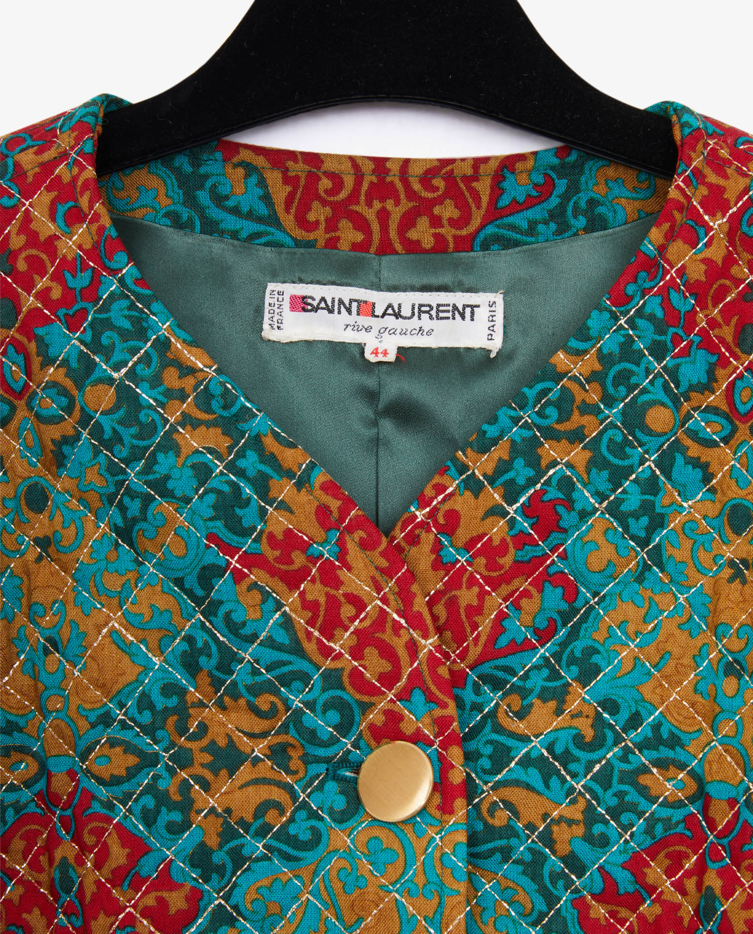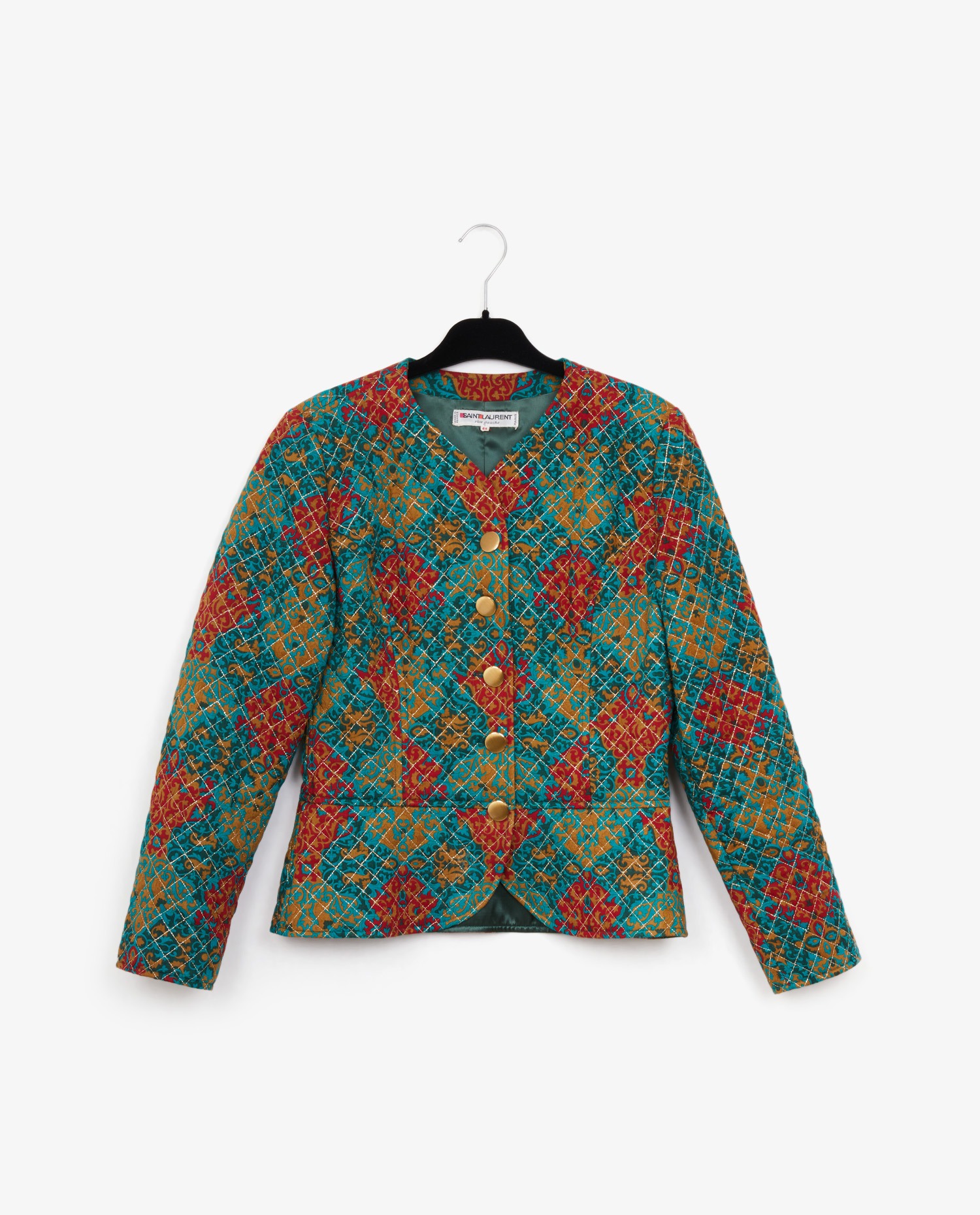 Veste Yves Saint Laurent Rive Gauche vintage. Taille 44 mais équivaut à une taille 40. Elle est matelassée avec finitions au fil doré. En très bon état.